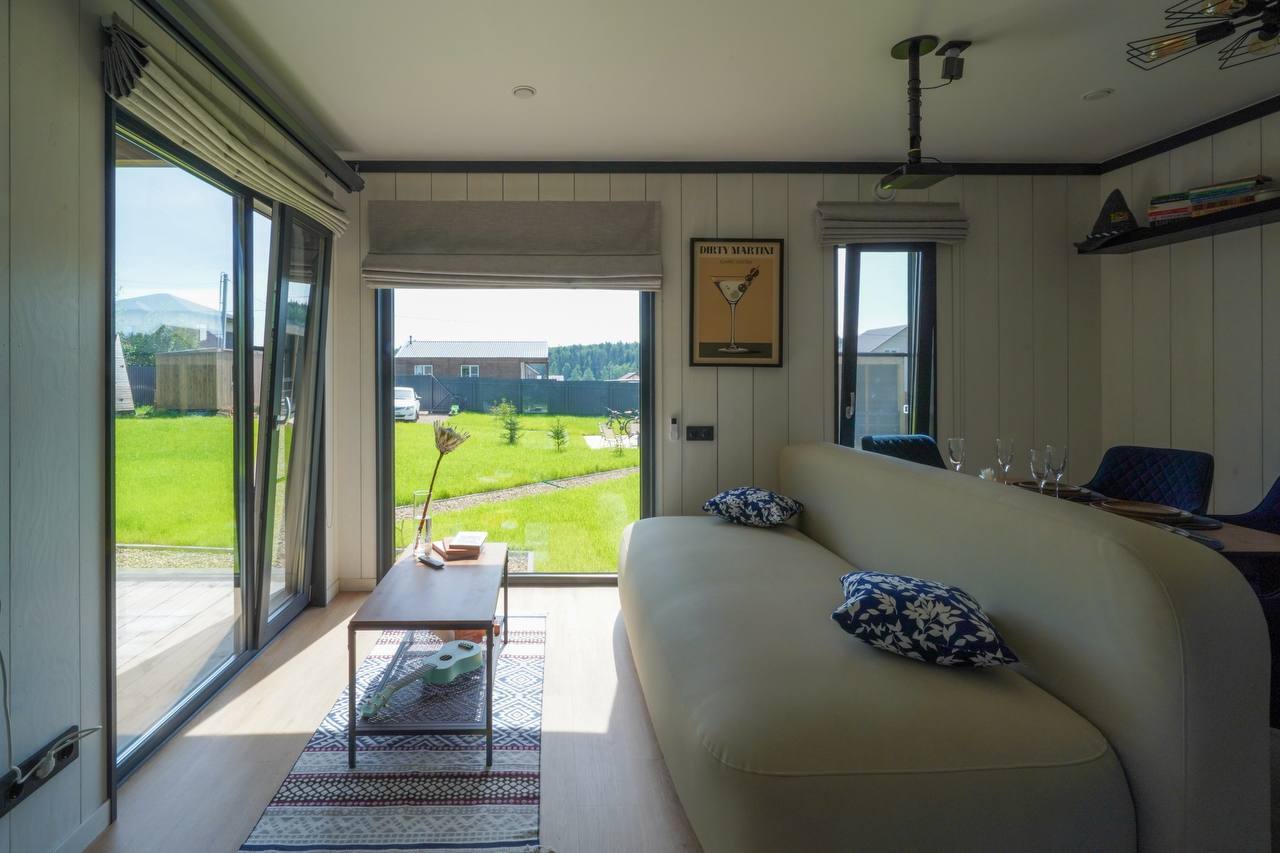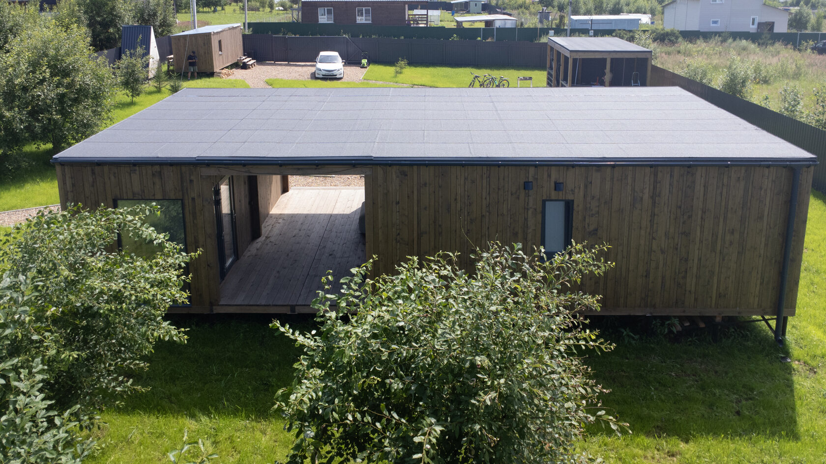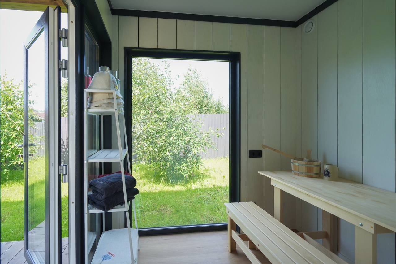 Тут у нас 3 модульный дом + 1 модульная баня. Соединены крытой террасой. Кажется, это идеально для небольшой дачи! Или арендного бизнеса)